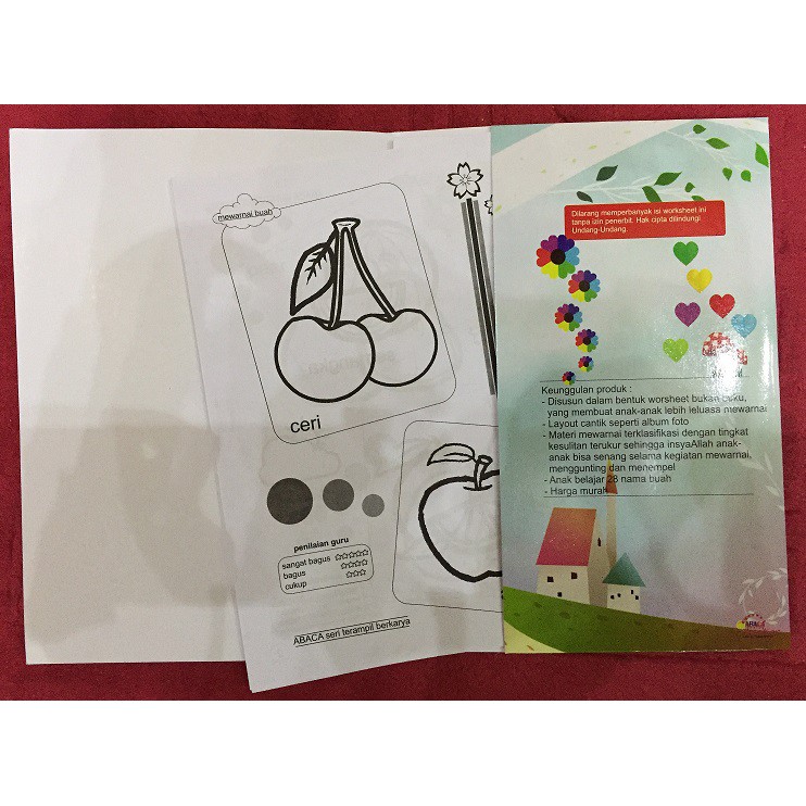 Worksheet Mewarnai Menempel Menggunting Seri Buah Buahan Untuk Tk