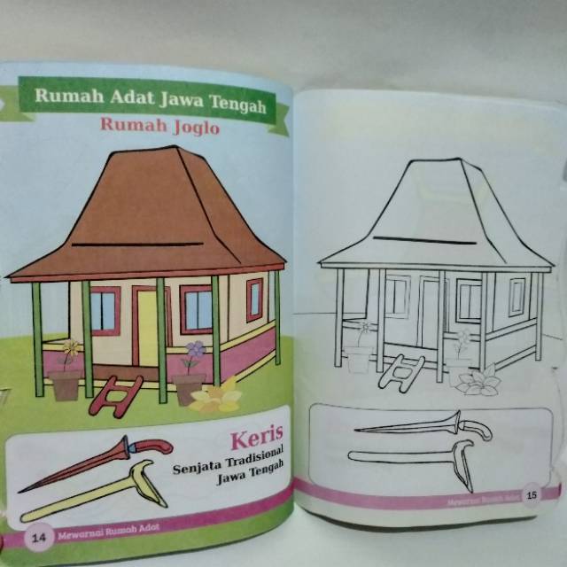 Buku Mewarnai Rumah Adat Beserta Mengenal Senjata Tradisional