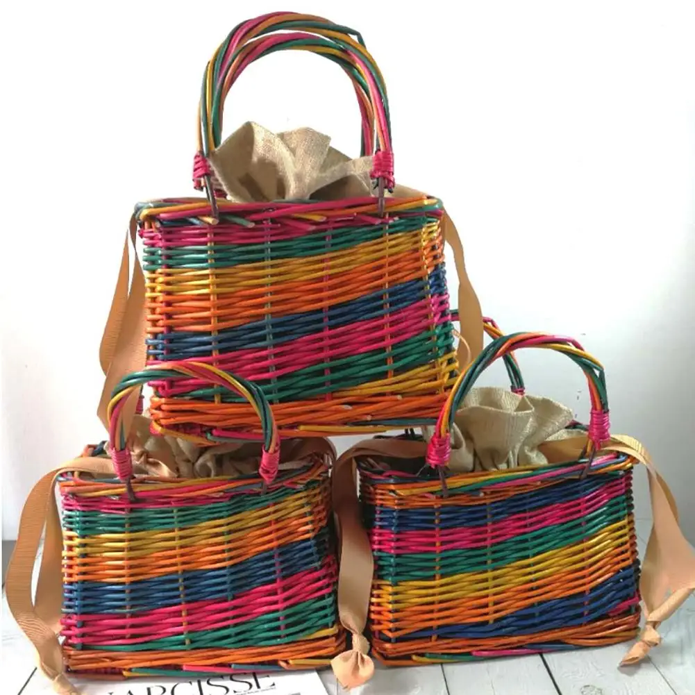 1 Pcs Piknik Pantai Warna Warni Anyaman Tas Warna Warni Mewarnai