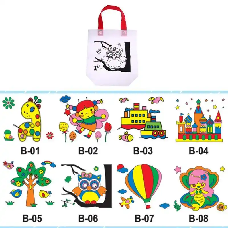 Coretan Spidol Dicat Tas Non Woven Mewarnai Gambar Tk Anak Seni