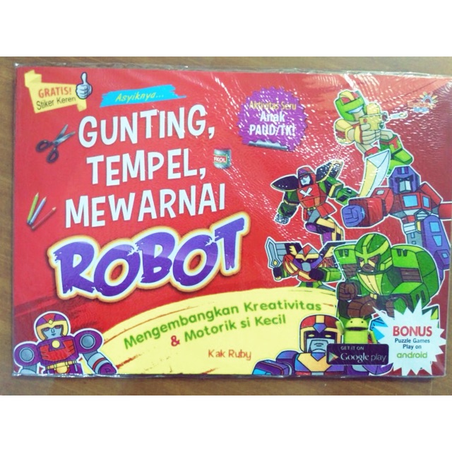 Apalagi buat mereka yang masih duduk di bangku tk atau sd. Asyiknya lagi buku ini dilengkapi dengan stiker robot dinosaurus keren dan stiker senjata andalannya. Dari setiap gambar disediakan juga halaman yang bisa adik adik warnai sendiri.