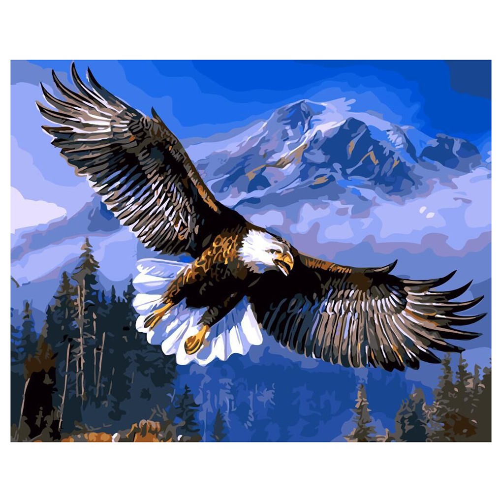 Lukisan Cat Minyak Desain Flying Eagle Bahan Kanvas Model Diy